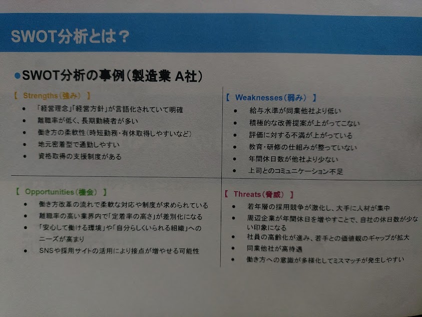・自社の定着課題をSWOT分析で見える化