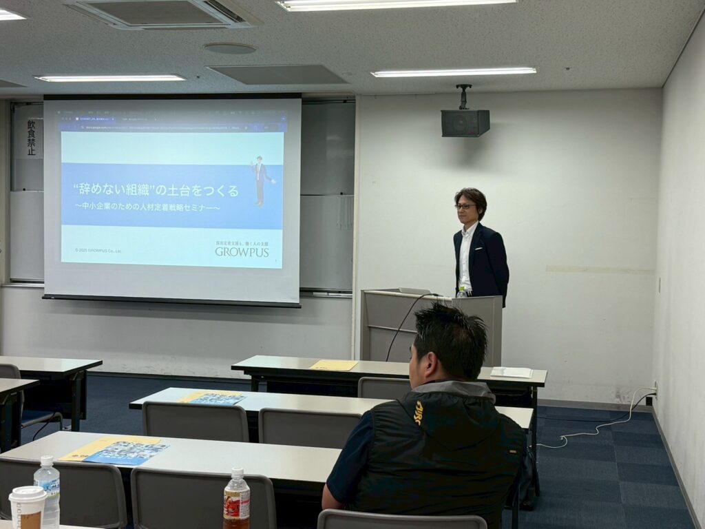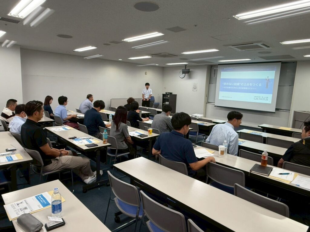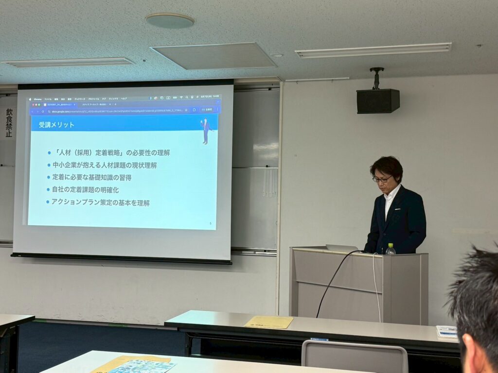 今回の研修では“辞めない組織”の土台をつくる~中小企業のための人材定着戦略セミナー~を行いました。