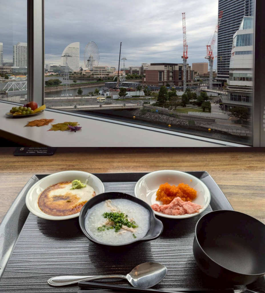 みなとみらいが一望できる窓際で朝食(バイキング)