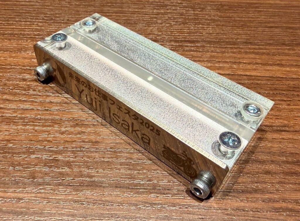 「切削」「孔開け」「レーザー加工」「組立」という、ものづくり製造の醍醐味を凝縮した4つの工程を体験し、自分だけのオリジナルフォトスタンドを製作できるという企画です。