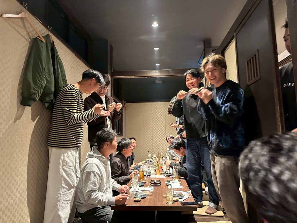 「乾杯!」の音頭とともに、今日一日の達成感と喜びを分かち合いました。