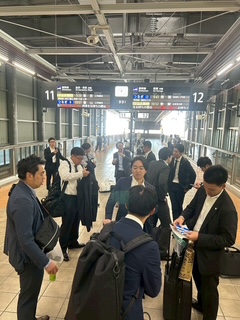 朝、福井県機械工業青年会総勢15名。福井駅に集合し北陸新幹線で出発!