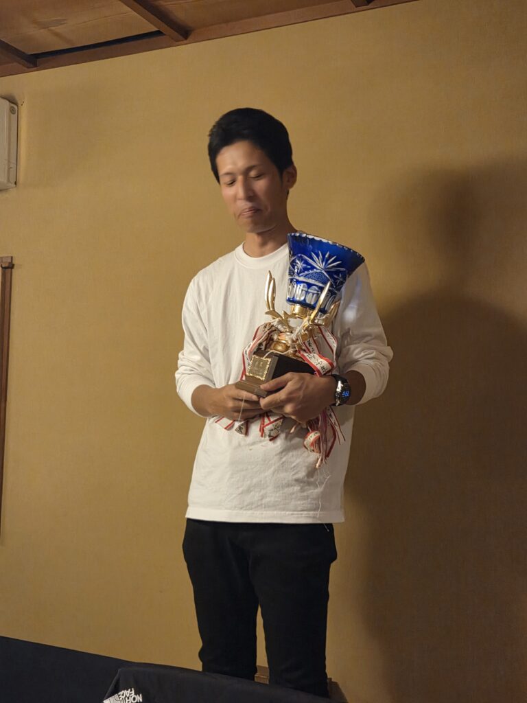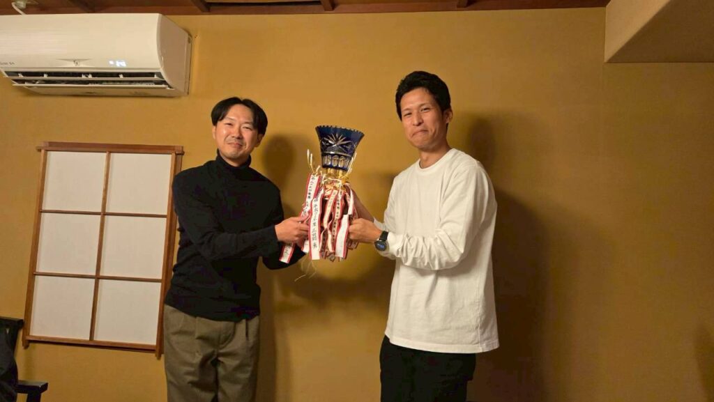 前回優勝者の三田村さんから優勝カップ返還となり、レプリカ贈呈しました。