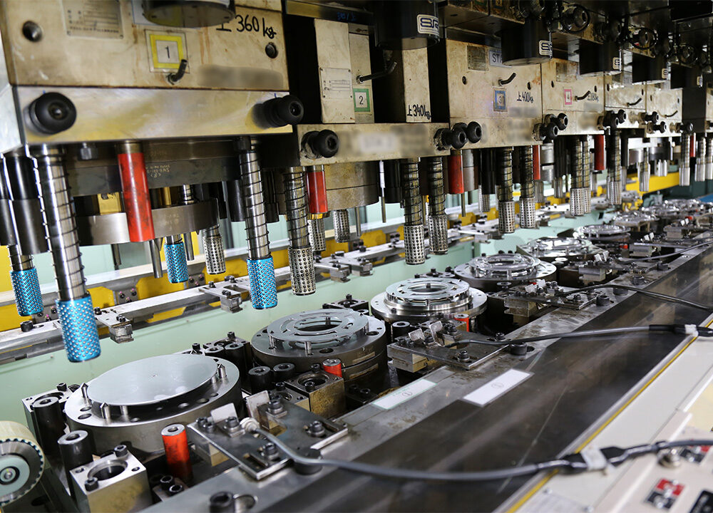 量産性に優れた特性を発揮する塑性技術。アイシン福井では、切削加工を必要としない高精度・高速度の量産化技術を目指し、さまざまな試行錯誤を行ってきました。トランスファープレス(T/F)、複動プレスによる多段複動成形の実用化、金型の内製化などもそのひとつ。多種多様な塑性技術を組み合わせ独自のノウハウを活用しながら、さらに高度な量産化実現を目指しています。