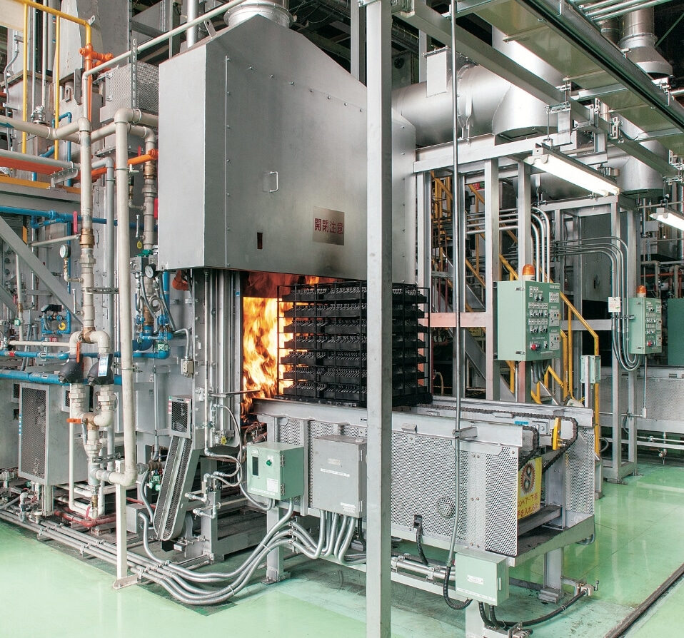 製品の強度・靭性アップに重要な役割を担う熱処理工程。アイシン福井では、浸炭・浸炭窒化およびガス軟窒化・真空熱処理・高周波熱処理など、目的・用途に応じた多彩な熱処理工程をラインナップ。また新たな熱処理技法の研究開発にも力を注いでいます。